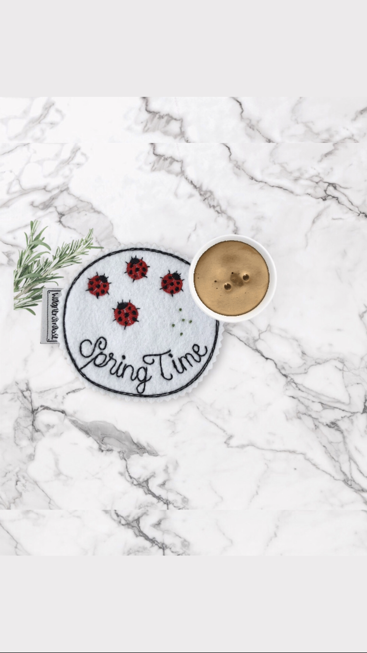 Getränke Untersetzer Mugrug mit Stickerei Marienkäfer Spring Time