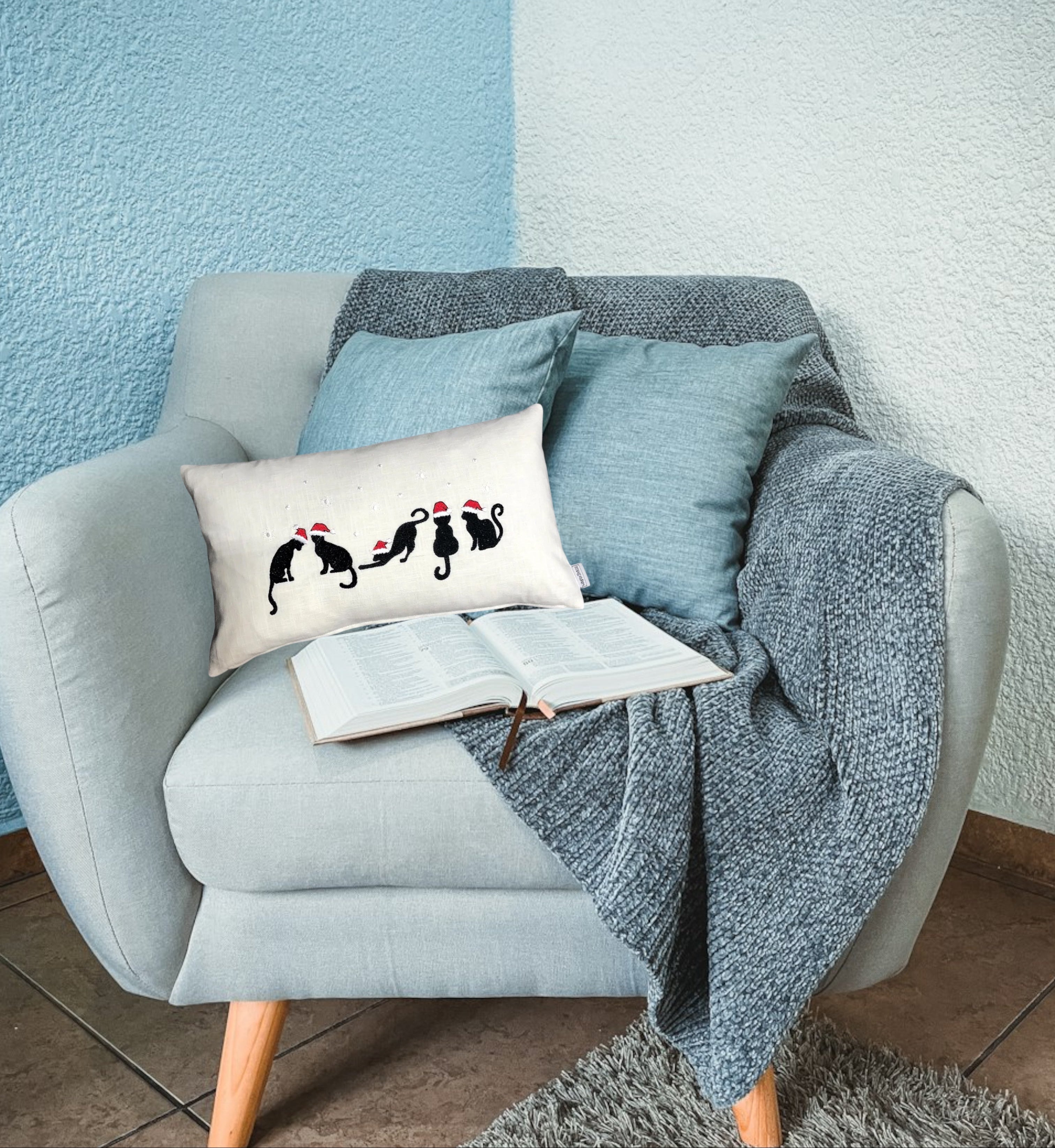 Katzen mit Zipfelmütze besticktes Kissen 30x50 cm