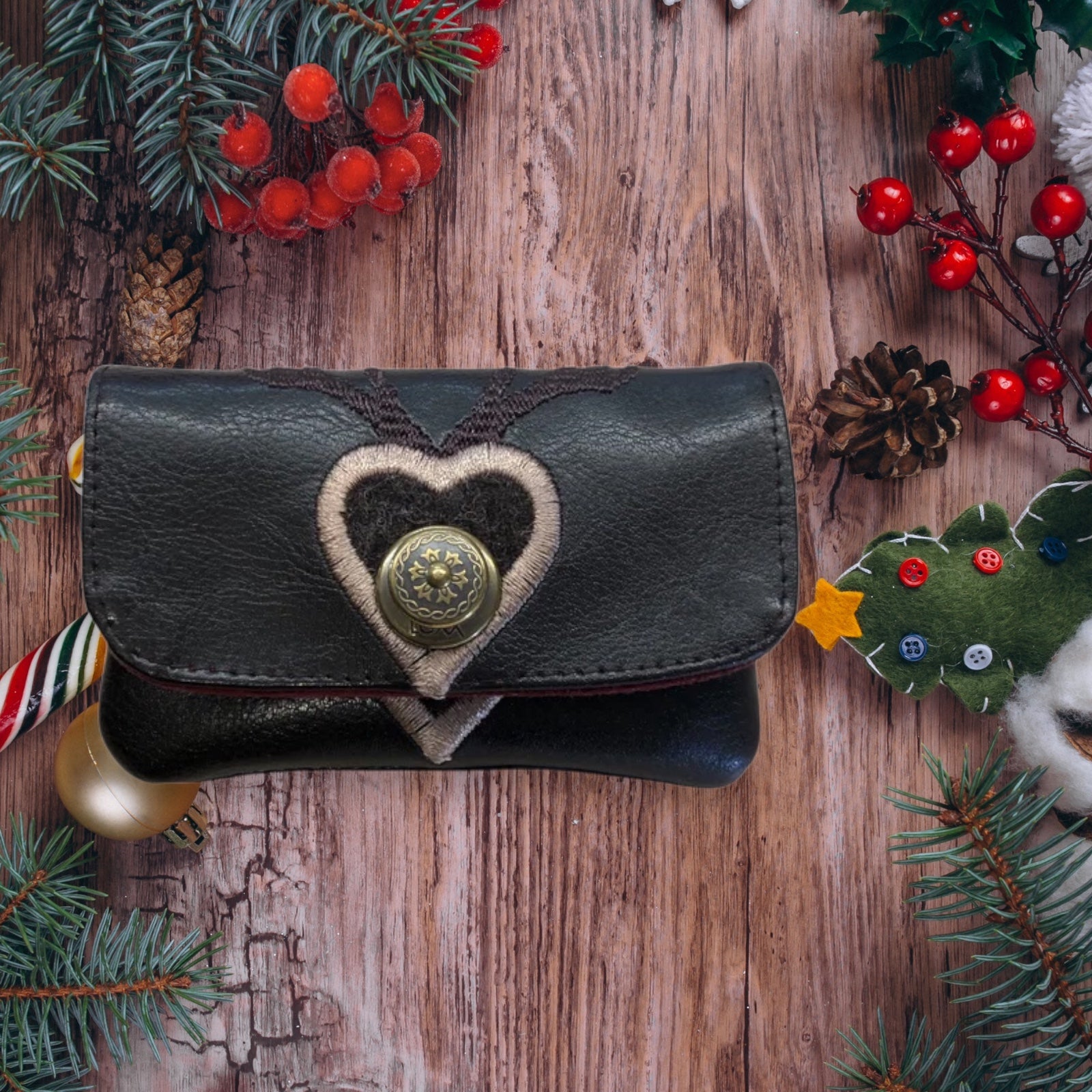 Kleines Portemonnaie mit Stickerei, Steckfächern, Loxx Verschluß