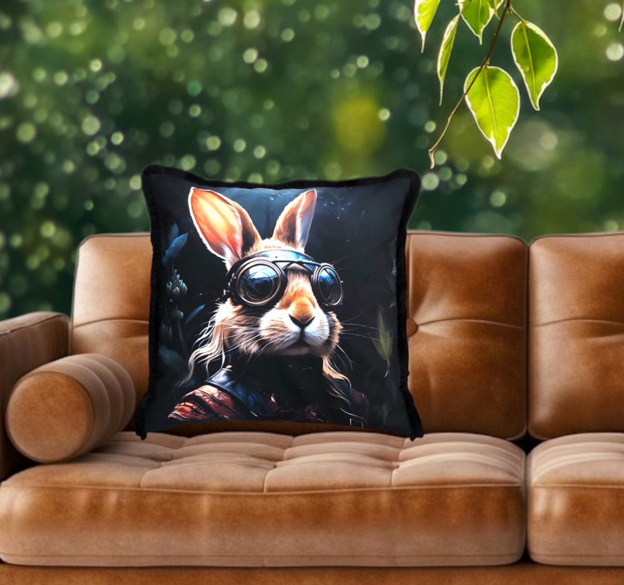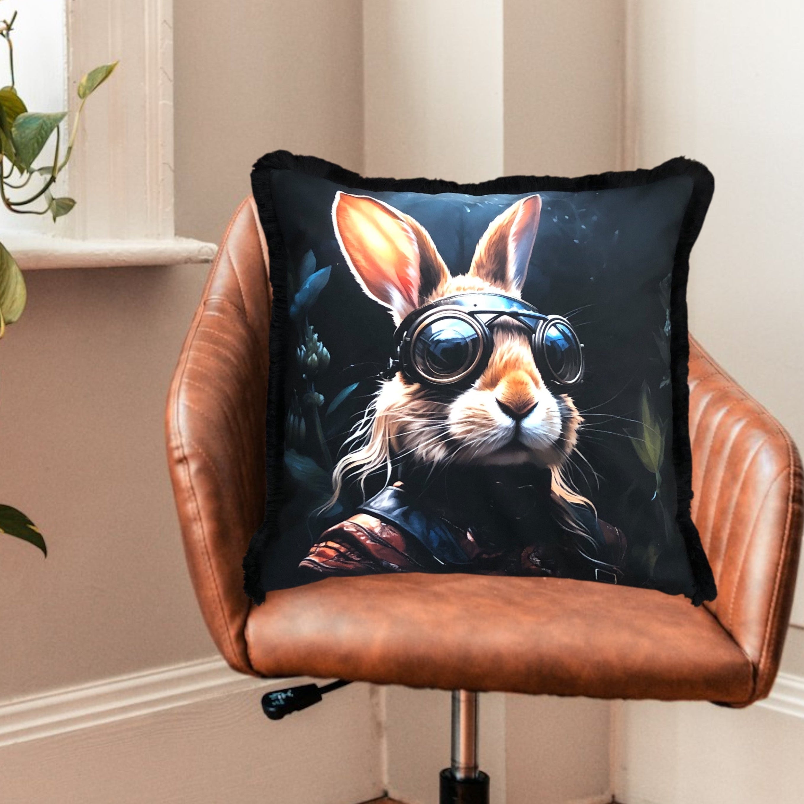 Cooles samtweiches Kissen Rockstar Hase