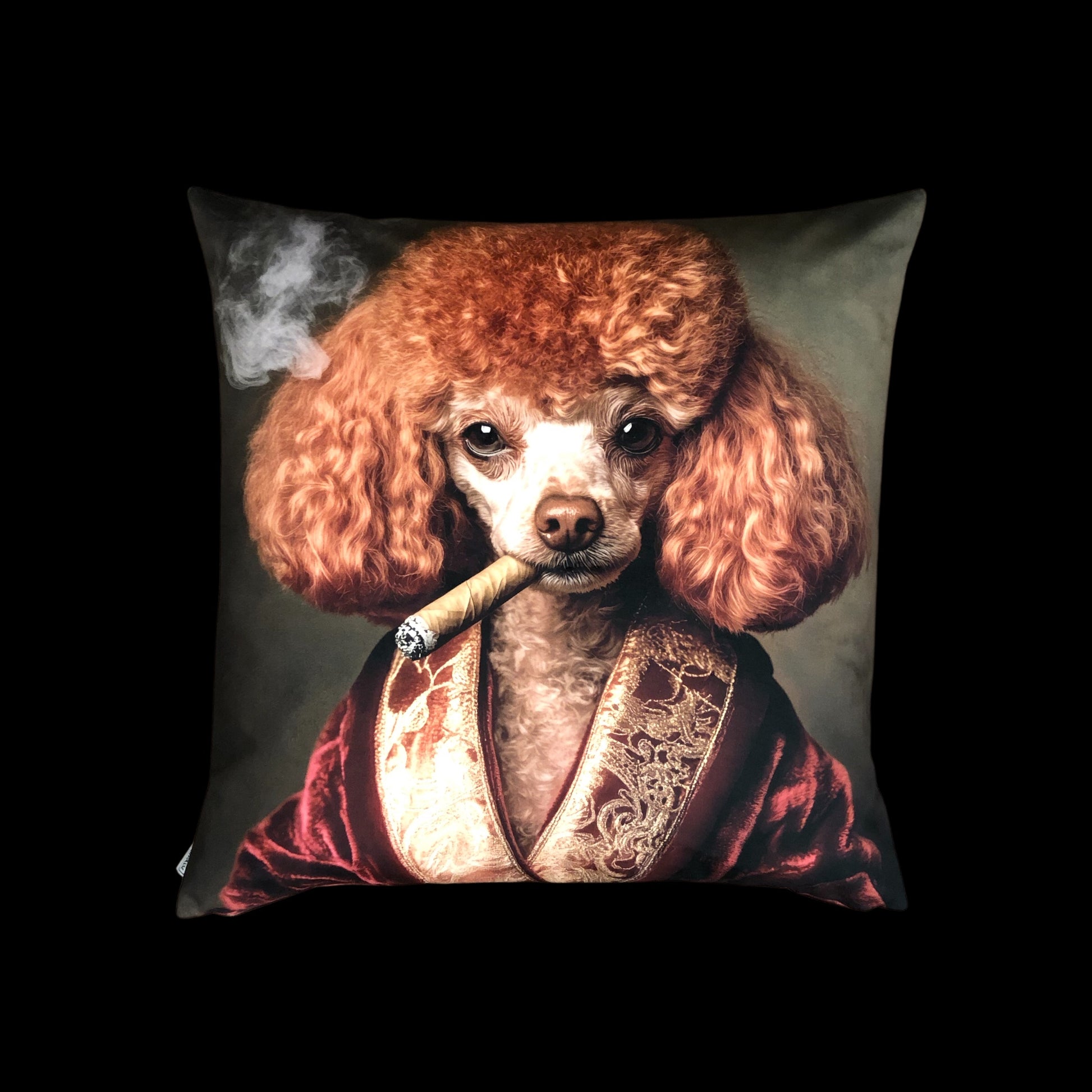 Cooles samtweiches Kissen Pudel mit Zigarre
