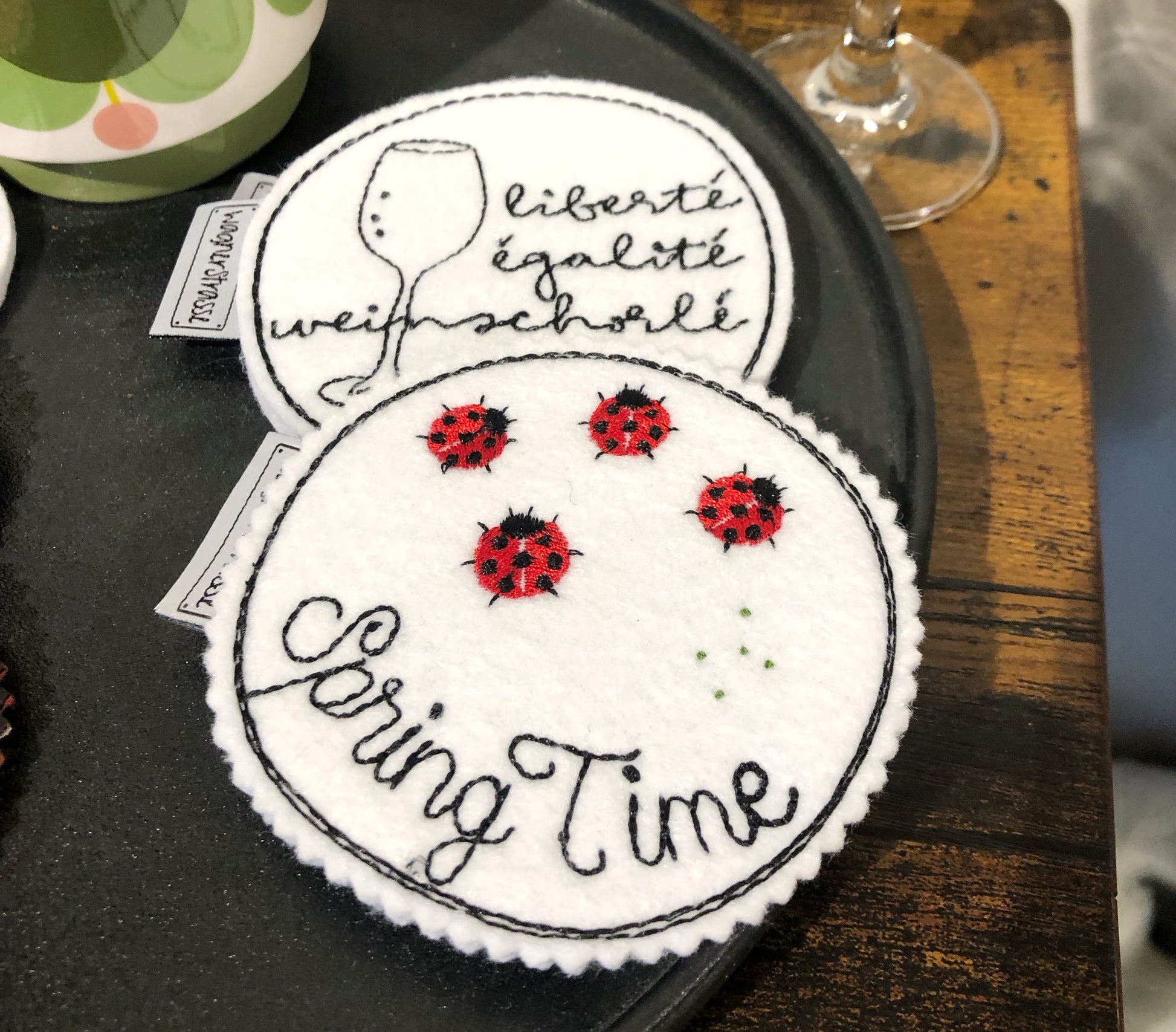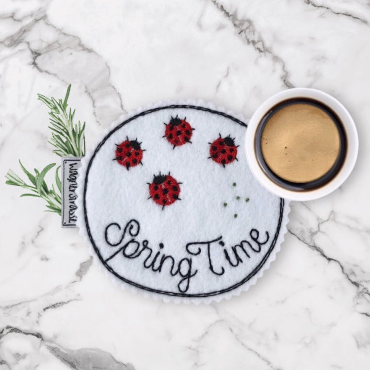 Getränke Untersetzer Mugrug mit Stickerei Marienkäfer Spring Time