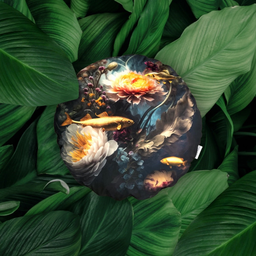 - Die samtweiche Vorderseite besteht aus einem Digitaldruck mit Unterwasserumgebung, Fischen, Wasserflora. Die Rückseite ist ein hochwertiger Möbelbezugsstoff mit pfirsichweicher Haptik in schwarz.