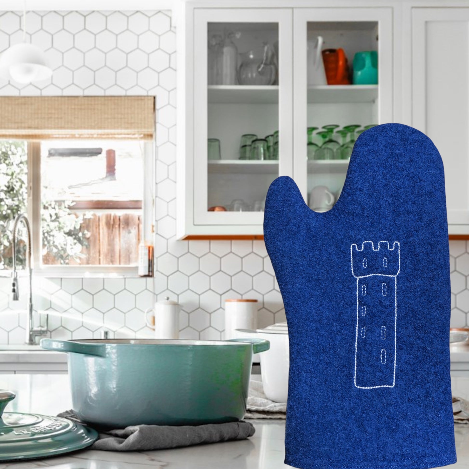 Ofenhandschuh mit Mehlsack Turm Stickerei